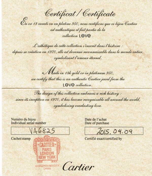 CARTIER LOVE 18KY BRACELET SIZE 18 – B4120